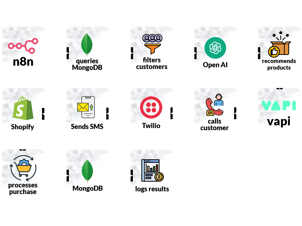 This agent watches for orders that are 10 days old, calls customers with matching product recommendations, and provides a limited-time discount to encourage another purchase. It tracks responses and feeds results back to your system.